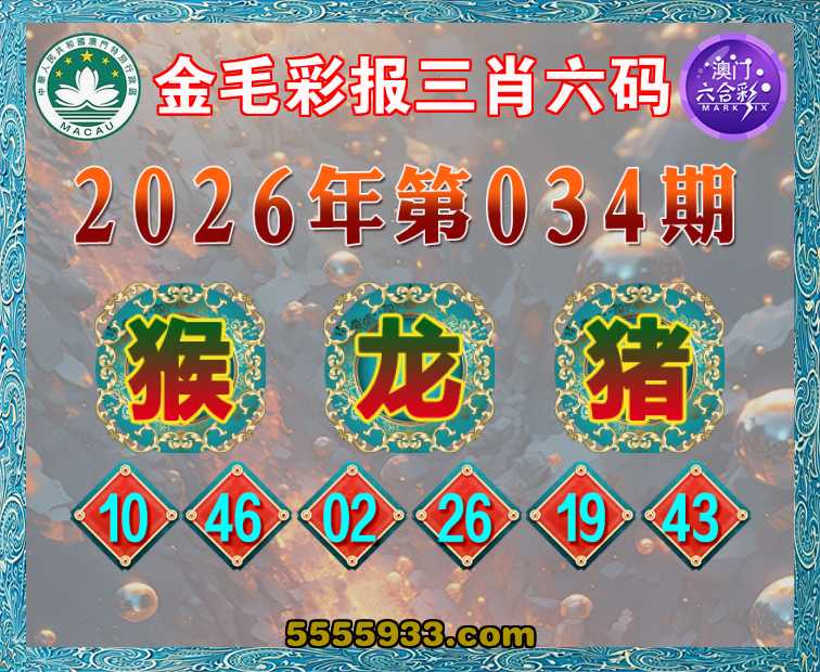 034期:《金毛彩报》 三肖六码【猴龙猪】开:猪19准