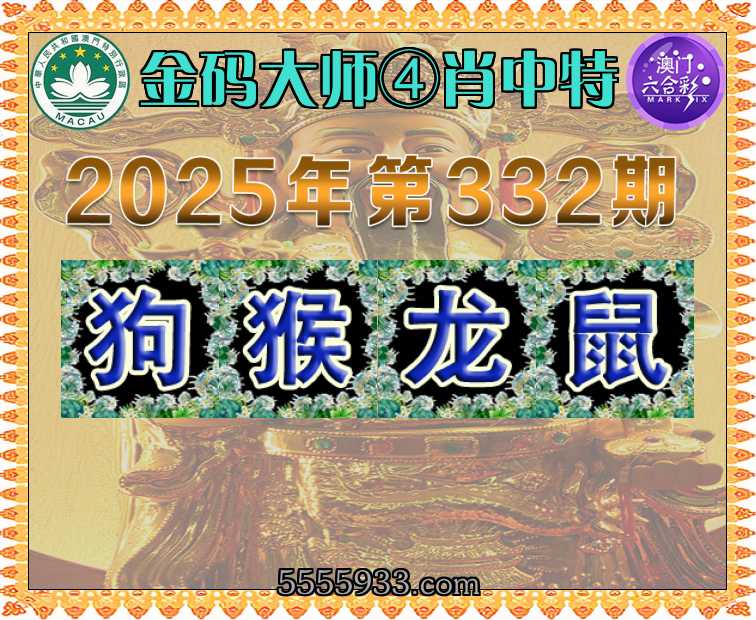 332期:〖金码大师〗 ④肖中特【狗.猴.龙.鼠】开:龙26准