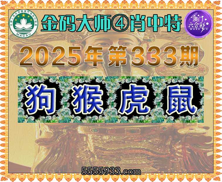 333期:〖金码大师〗 ④肖中特【狗.猴.虎.鼠】开:鼠06准