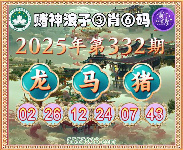 332期:『赌神浪子』 ③肖⑥码【龙马猪】开:龙26准