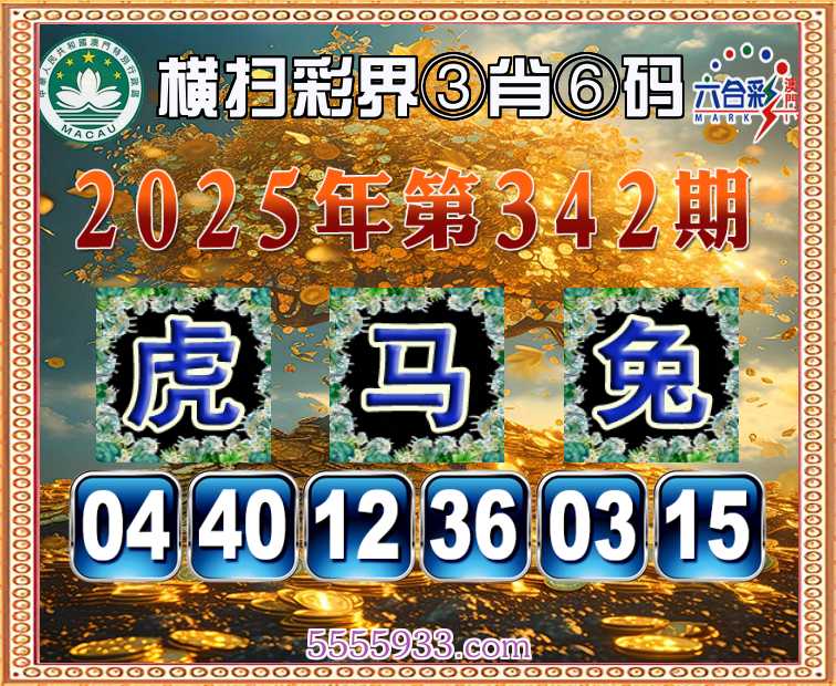 342期:【横扫彩界】 ③肖⑥码【虎马兔】开:虎04准