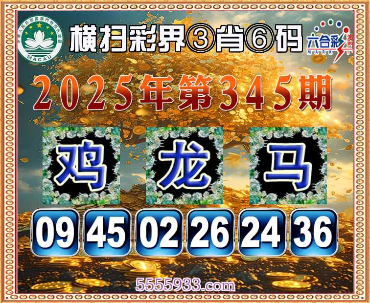 345期:【横扫彩界】 ③肖⑥码【鸡龙马】开:马24准