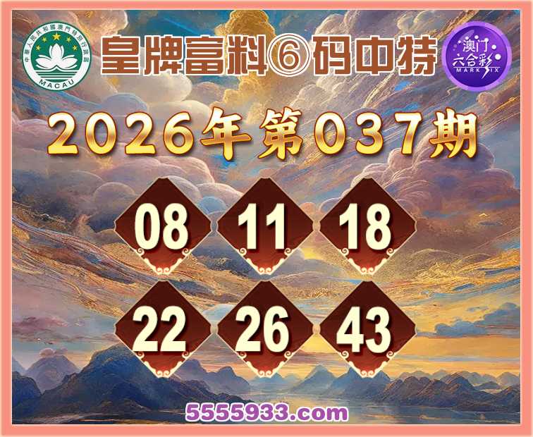037期:《皇牌富料》 ⑥码中特【08.11.18.22.26.43】开:43准
