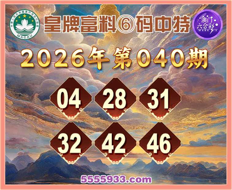 040期:《皇牌富料》 ⑥码中特【04.28.31.32.42.46】开:28准