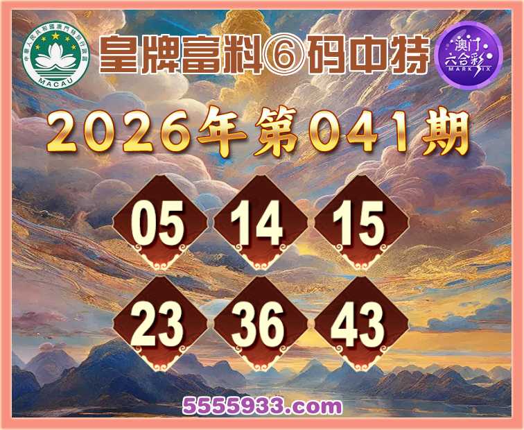 041期:《皇牌富料》 ⑥码中特【05.14.15.23.36.43】开:36准