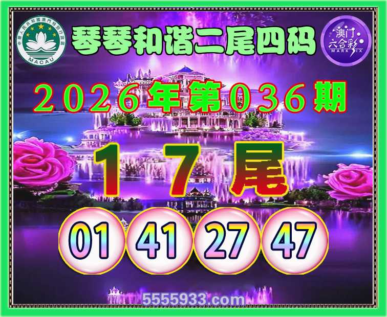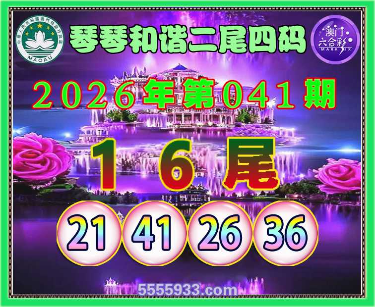 041期: 琴琴和谐 二尾四码【16尾主:21.41.26.36】开:36准