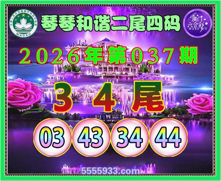 037期: 琴琴和谐 二尾四码【34尾主:03.43.34.44】开:43准