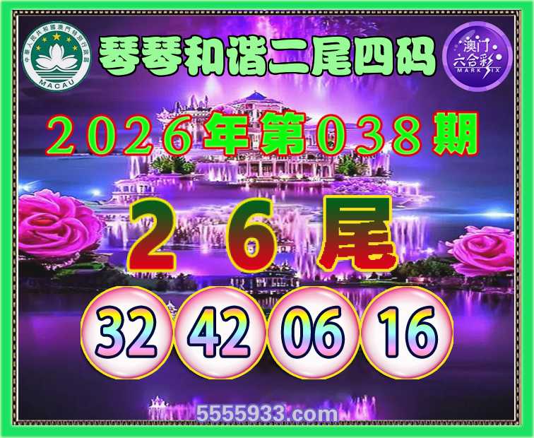 038期: 琴琴和谐 二尾四码【26尾主:32.42.06.16】开:42准