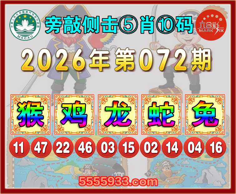 072期: 『旁敲侧击』 ⑤肖⑩码【猴龙蛇兔】开:鸡46