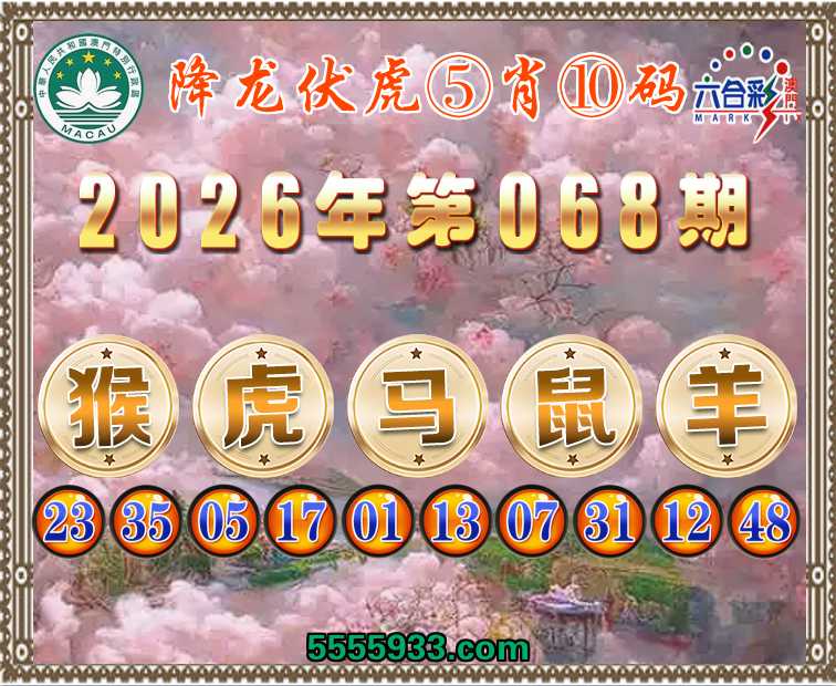 068期:『降龙伏虎』 ⑤肖⑩码【猴虎马鼠羊】开:猴23准
