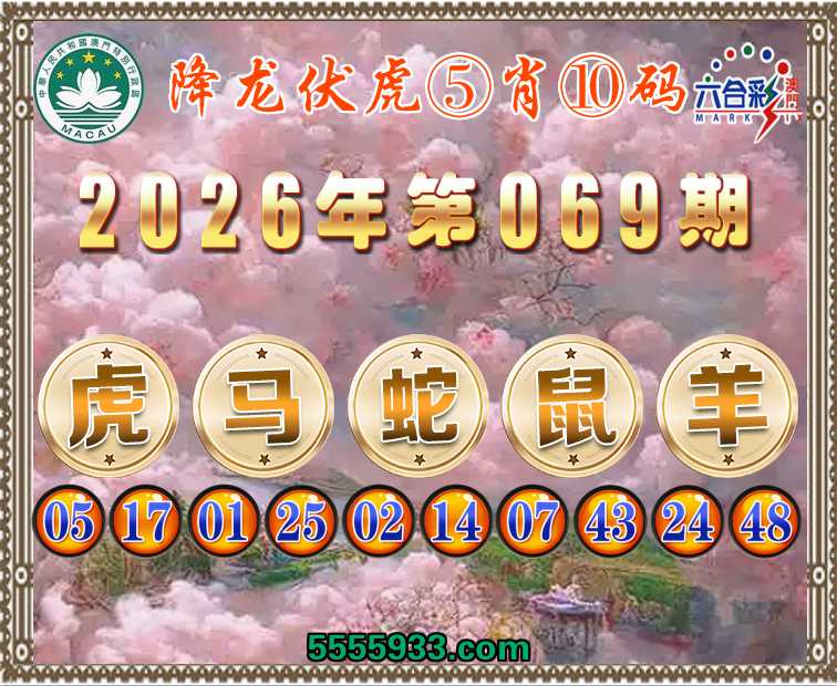 069期:『降龙伏虎』 ⑤肖⑩码【虎马蛇鼠羊】开:羊24准