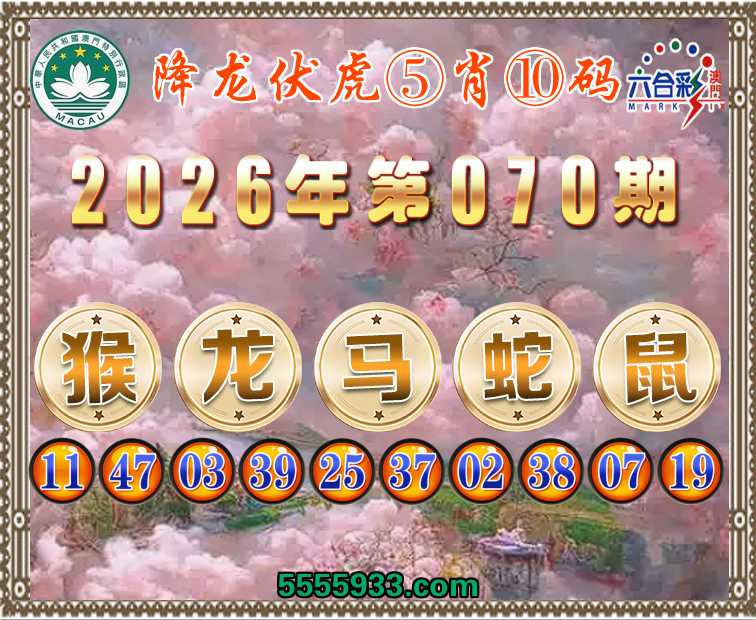 070期:『降龙伏虎』 ⑤肖⑩码【猴龙马蛇鼠】开:马25准