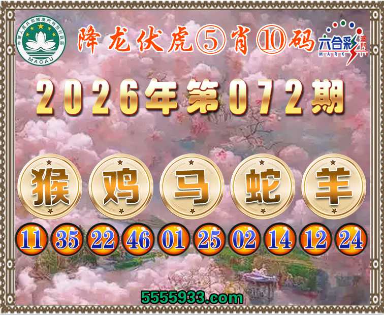 072期:『降龙伏虎』 ⑤肖⑩码【猴鸡马蛇羊】开:鸡46准
