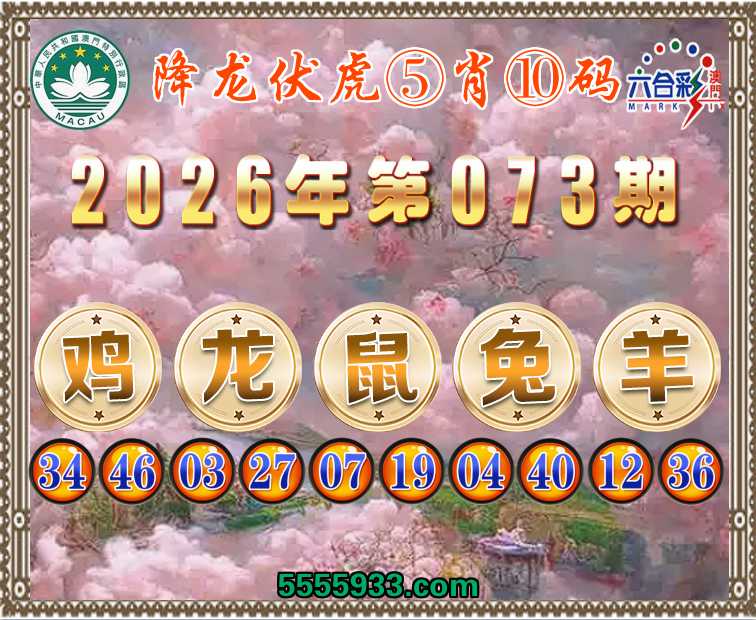 073期:『降龙伏虎』 ⑤肖⑩码【鸡龙鼠兔羊】开:鸡34准