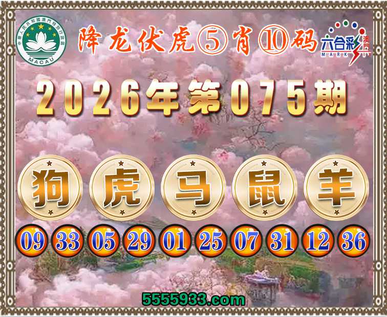 075期:『降龙伏虎』 ⑤肖⑩码【狗虎马鼠羊】开:狗33准