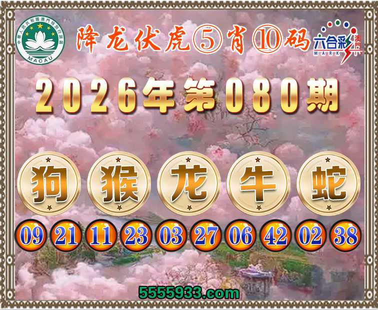 080期:『降龙伏虎』 ⑤肖⑩码【狗猴龙牛蛇】开:龙03准上榜高手