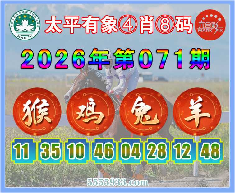 071期: 『太平有象』 ④肖⑧码【猴鸡兔羊】开:羊48准
