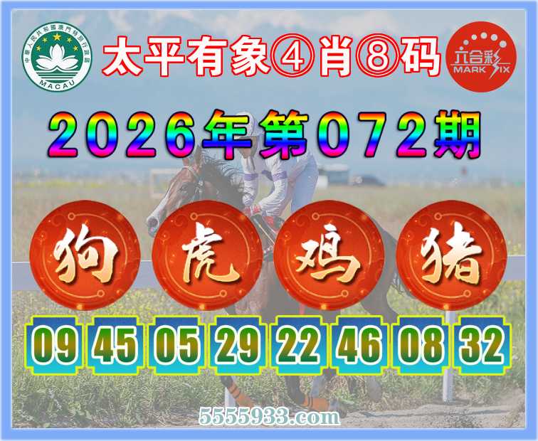 072期: 『太平有象』 ④肖⑧码【狗虎鸡猪】开:鸡46准