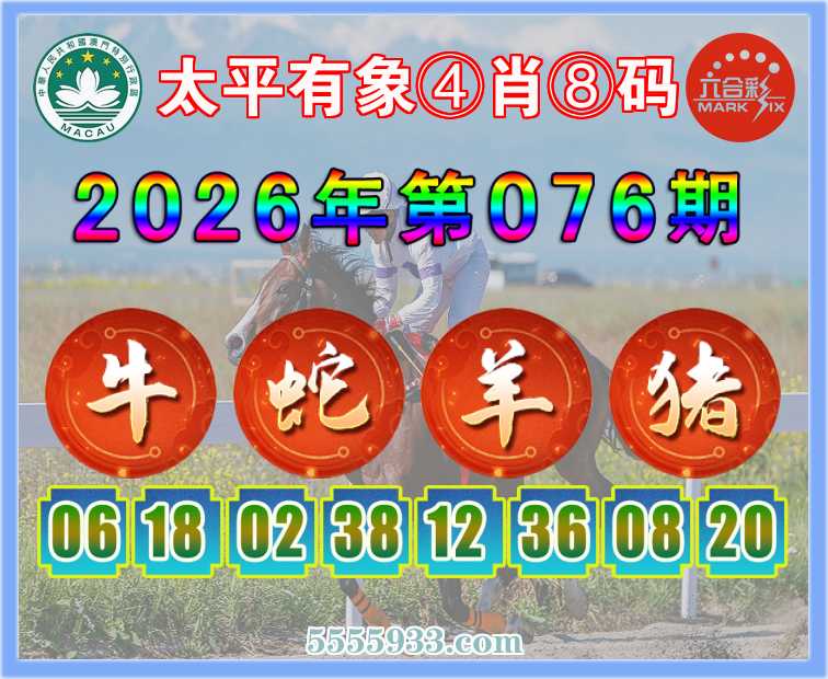 076期: 『太平有象』 ④肖⑧码【牛蛇羊猪】开:蛇02准