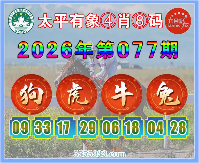 075期: 『太平有象』 ④肖⑧码【狗马鼠羊】开:狗33准