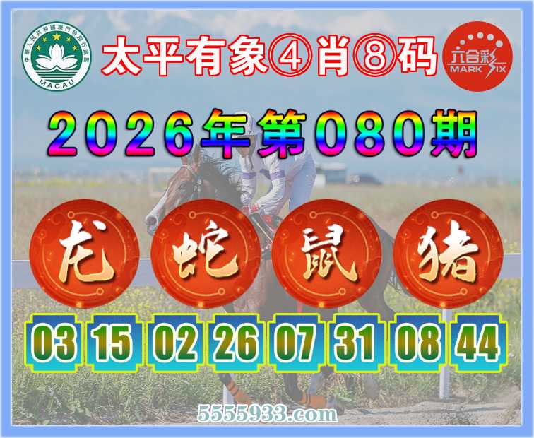 080期: 『太平有象』 ④肖⑧码【龙蛇鼠猪】开:龙03准