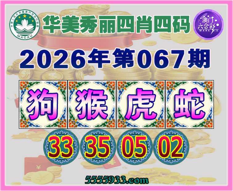 067期:【华美秀丽】 四肖四码【狗猴虎蛇】【33.35.05.02】开:虎05准