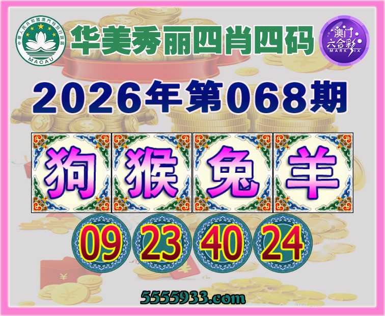 068期:【华美秀丽】 四肖四码【狗猴兔羊】【09.23.40.24】开:猴23准