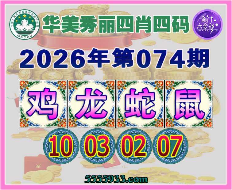 074期:【华美秀丽】 四肖四码【鸡龙蛇鼠】【10.03.02.07】开:鸡10准