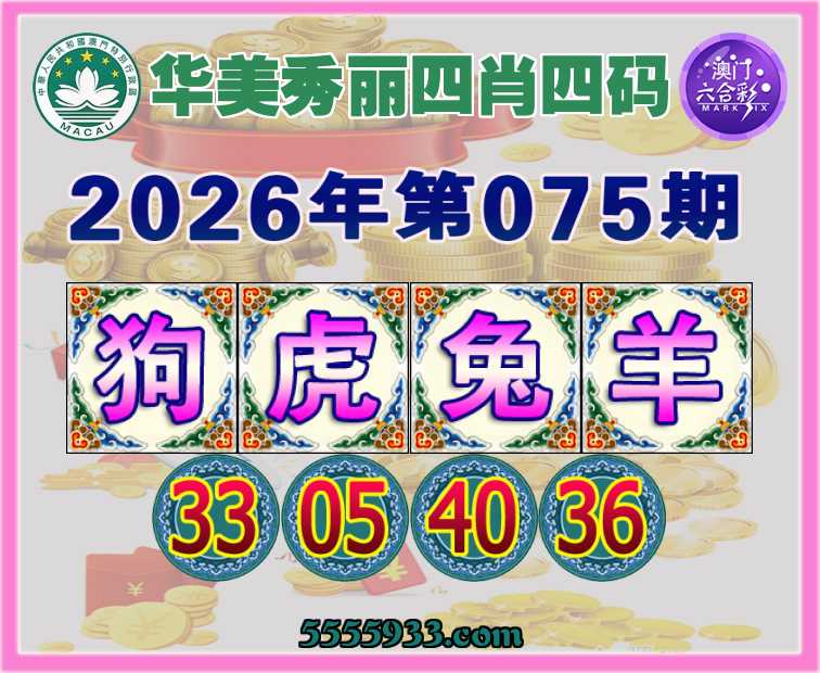 075期:【华美秀丽】 四肖四码【狗虎兔羊】【33.05.40.36】开:狗33准