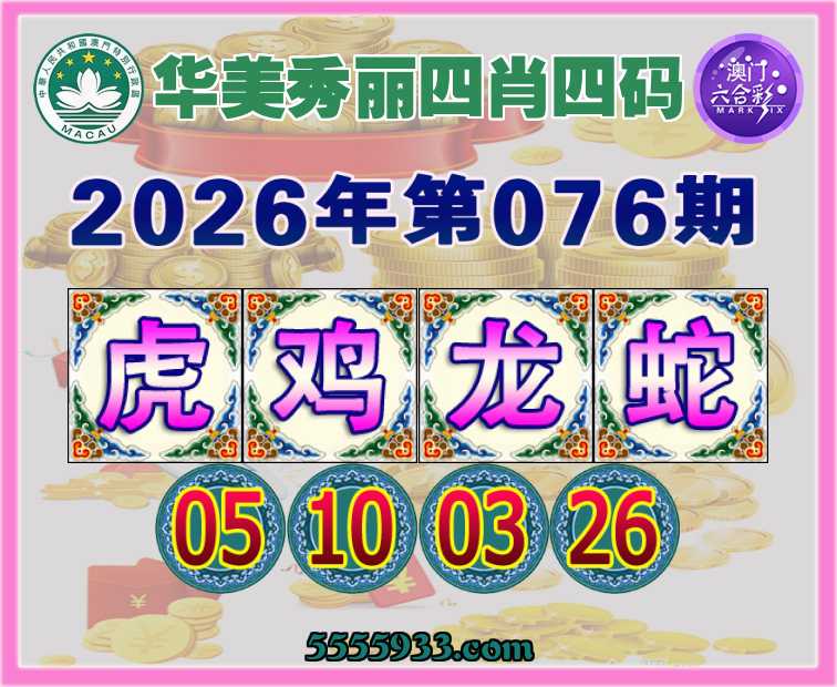 076期:【华美秀丽】 四肖四码【虎鸡龙蛇】【05.10.03.26】开:蛇02准