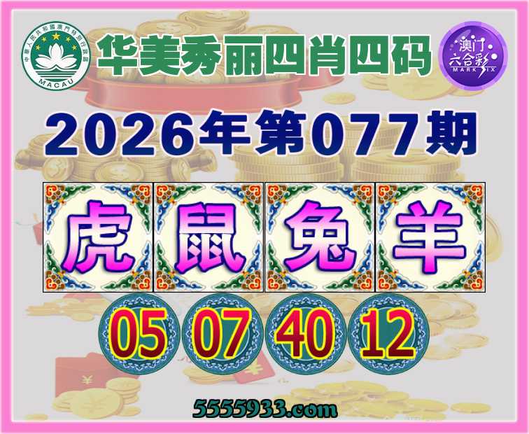 077期:【华美秀丽】 四肖四码【虎鼠兔羊】【05.07.40.12】开:虎29准