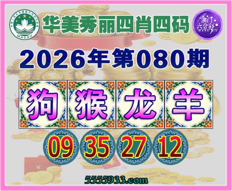 080期:【华美秀丽】 四肖四码【狗猴龙羊】【09.35.27.12】开:龙03准